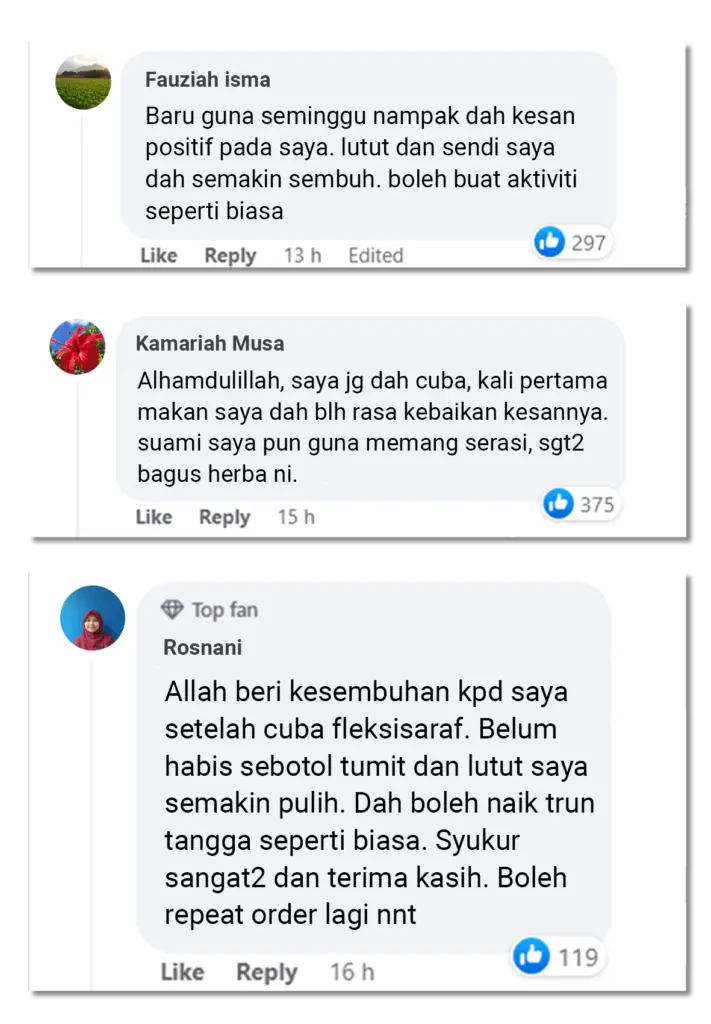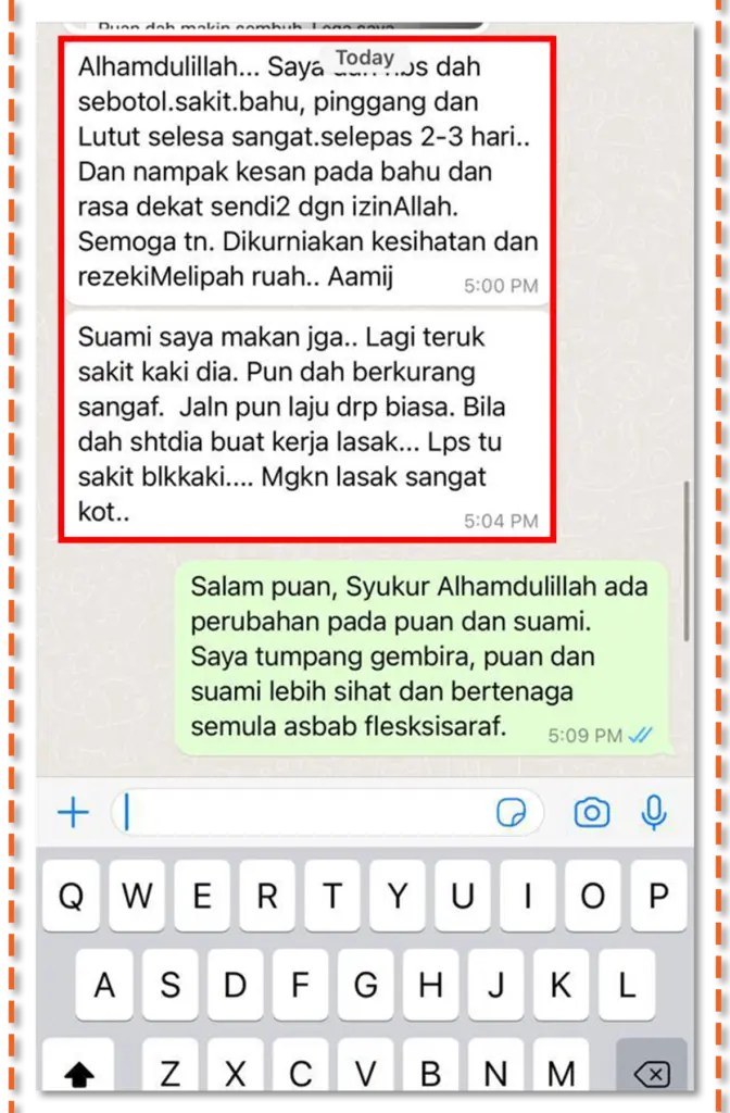 Alhamdulillah kebas tangan & kaki, sakit urat dan sakit lutut masa solat lega lepas amalkan Fleksisaraf