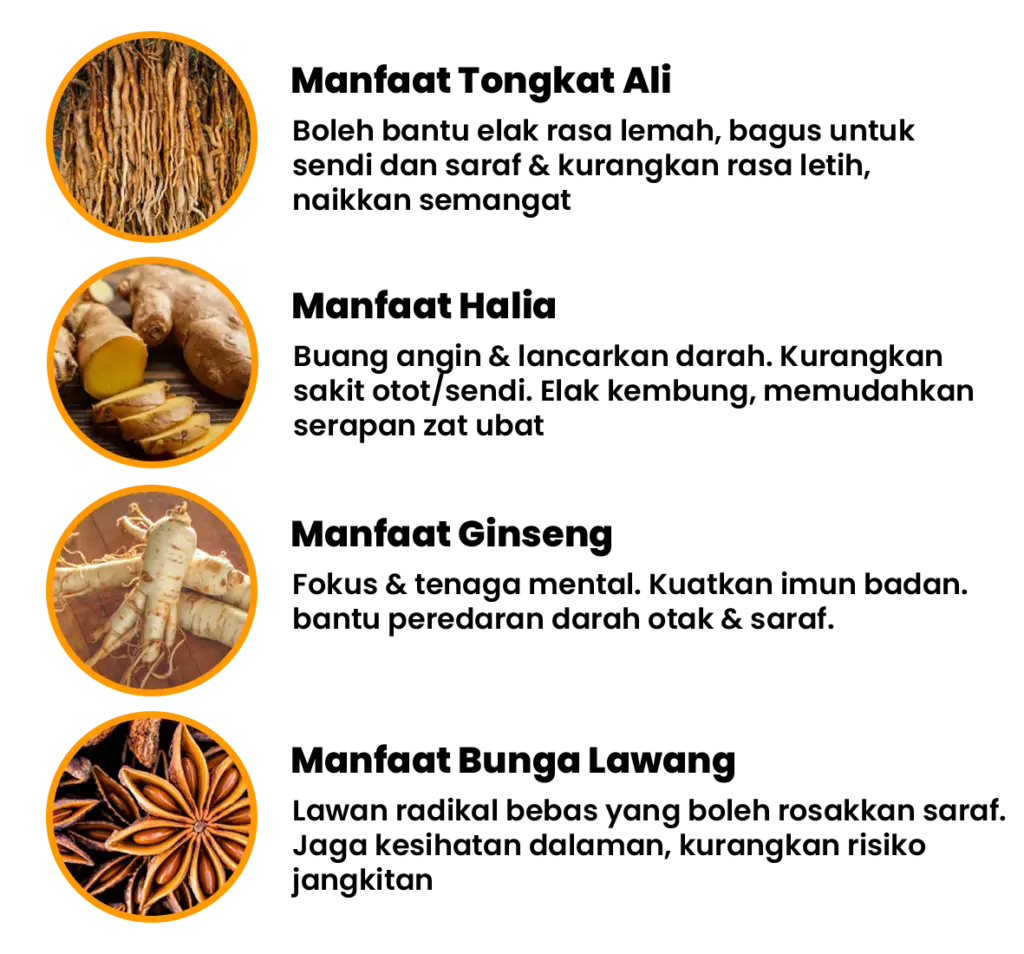 – Jika ada ambil ubat lain jarakkan 1 -2 jam agar herba tak ganggu fungsi ubat.